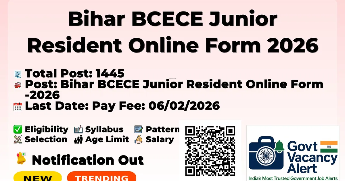 Post Name:Bihar BCECE Junior Resident Online Form 2026