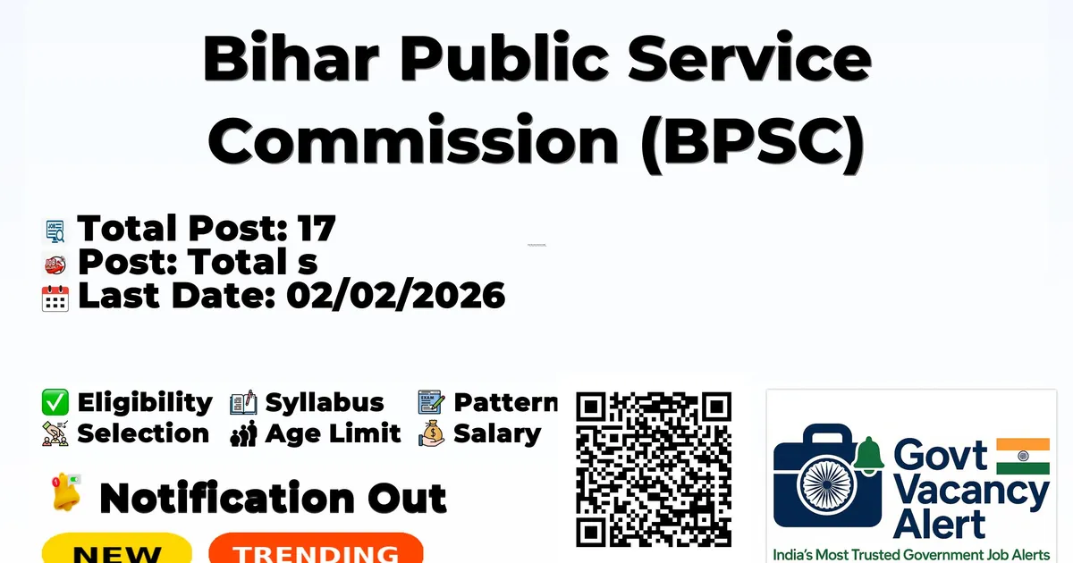 Bihar Public Service Commission (BPSC) has released an official notification for the recruitment of 17 Factory Inspector Posts. Interested and eligible candidates can apply Online through the official BPSC website. The last date to submit the application form is 02-02-2026. In this article, you’ll find the BPSC Factory Inspector Posts recruitment details, including eligibility criteria, age limit, salary structure, selection process, application steps, and direct links to the official notification and Online application form.