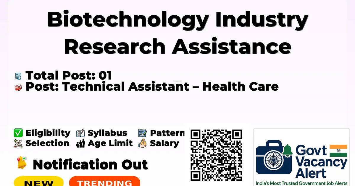 Biotechnology Industry Research Assistance Council (BIRAC) has released an official notification for the recruitment of 01 Technical Assistant Posts. Interested and eligible candidates can apply Online through the official BIRAC website. The last date to submit the application form is 30-01-2026. In this article, you’ll find the BIRAC Technical Assistant Posts recruitment details, including eligibility criteria, age limit, salary structure, selection process, application steps, and direct links to the official notification and Online application form.