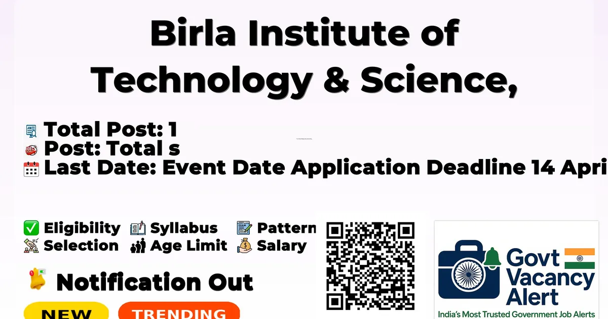 Birla Institute of Technology & Science, Pilani (BITS Pilani) Junior Research Fellow Recruitment 2026 notification has been released on the official website of BITS Pilani. A total of 1 vacancy has been announced through the BITS Pilani Junior Research Fellow Recruitment 2026.