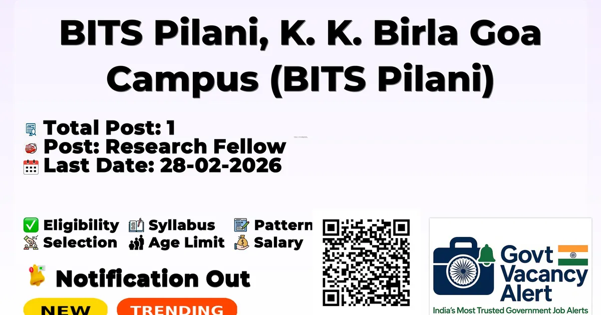 Birla Institute of Technology And Science Pilani (BITS Pilani) has released an official notification for the recruitment of Not mentioned Research Fellow Posts. Interested and eligible candidates can apply Online through the official BITS Pilani website. The last date to submit the application form is 28-02-2026. In this article, you’ll find the BITS Pilani Research Fellow Posts recruitment details, including eligibility criteria, age limit, salary structure, selection process, application steps, and direct links to the official notification and Online application form.