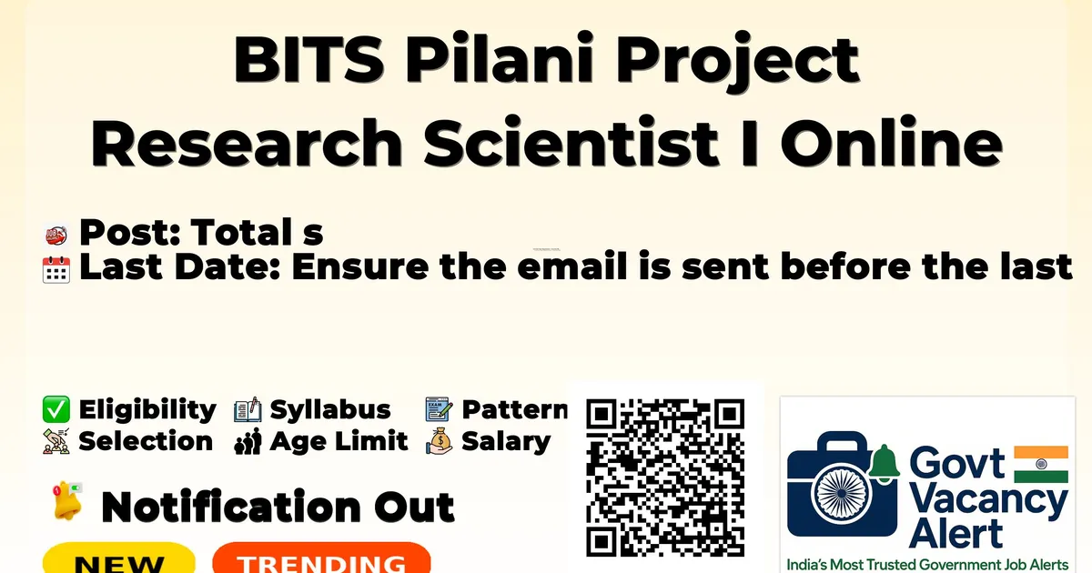 Birla Institute of Technology Science Pilani (BITS Pilani) has released an official notification for the recruitment of 01 Project Research Scientist I Posts. Interested and eligible candidates can apply Online through the official BITS Pilani website. The last date to submit the application form is 25-02-2026. In this article, you’ll find the BITS Pilani Project Research Scientist I Posts recruitment details, including eligibility criteria, age limit, salary structure, selection process, application steps, and direct links to the official notification and Online application form.
