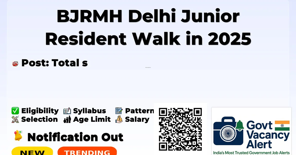 Babu Jagjivan Ram Memorial Hospital (BJRMH Delhi) Recruitment 2025 for 05 posts of Junior Resident. Candidates with MBBS Can attend the walkin. The Walk-in on 27-11-2025. For detailed information please visit BJRMH Delhi official website, bjrmh.delhi.gov.in.