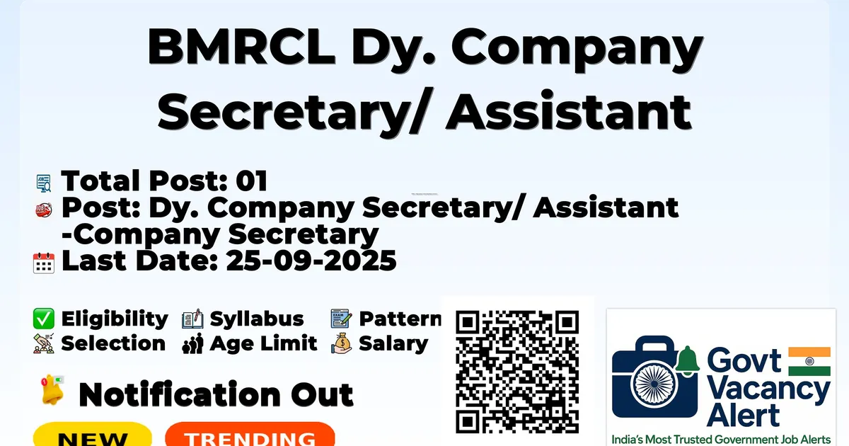 The BMRCL Dy. Company Secretary/ Assistant Company Secretary Recruitment 2025 Notification PDF has been released on 03-09-2025 at bmrc.co.in. Check the complete job details, vacancy, age limit, application fee, selection process and how to apply from the article. You can Check all Latest Sarkari Result Updates of All Central Government Jobs and State Government Jobs.