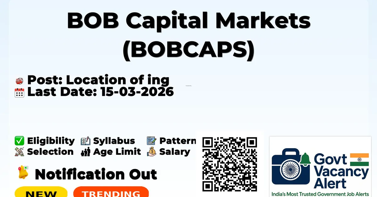 BOB Capital Markets (BOBCAPS) has released an official notification for the recruitment of Manager, AVP and More Posts. Interested and eligible candidates can apply Online through the official BOBCAPS website. The last date to submit the application form is 15-03-2026. In this article, you’ll find the BOBCAPS Manager, AVP and More Posts recruitment details, including eligibility criteria, age limit, salary structure, selection process, application steps, and direct links to the official notification and Online application form.