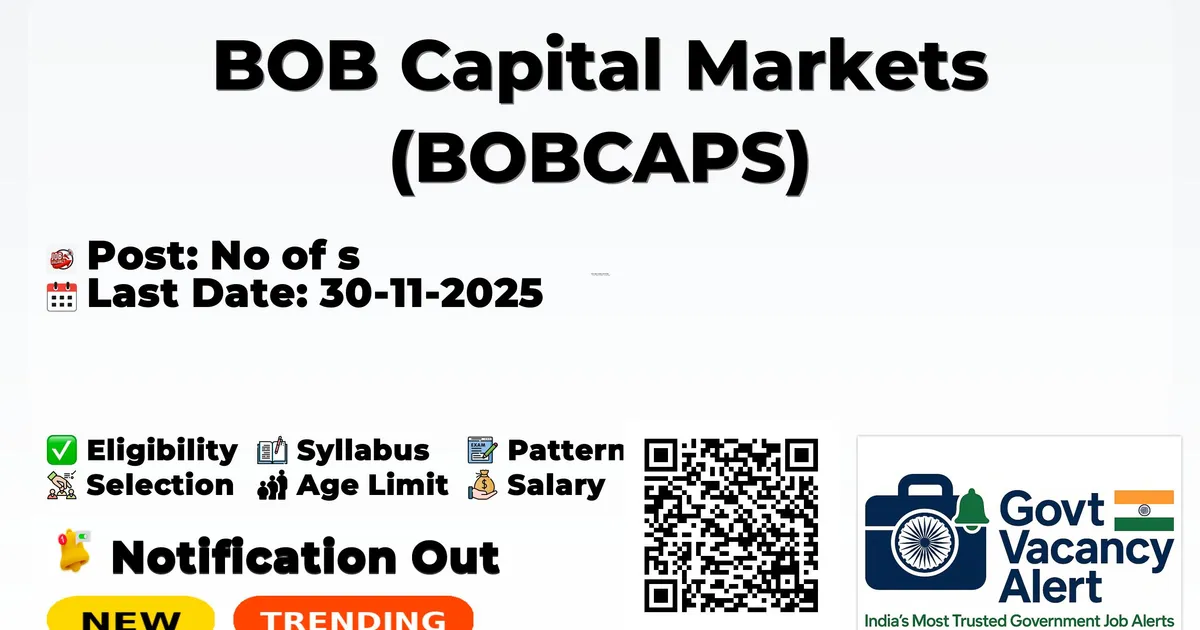 Company Name BOB Capital Markets (BOBCAPS) Post Name Manager Qualification Graduate, Post Graduate Last Date for Apply Online 30-11-2025 Official Website bobcaps.in