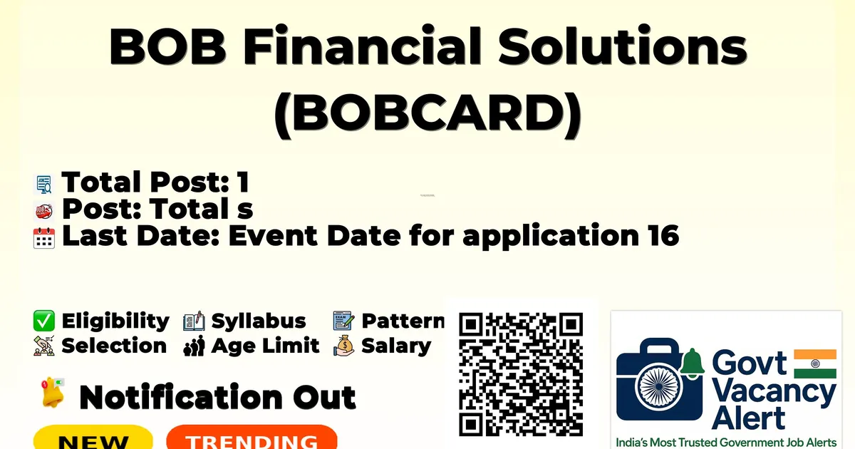 BOB Financial Solutions (BOBCARD) has released an official notification for the recruitment of Assistant Manager/Sr. Officer - Collections Posts. Interested and eligible candidates can apply Online through the official BOBCARD website. The last date to submit the application form is 16-03-2026. In this article, you'll find the Assistant Manager/Sr. Officer - Collections recruitment details, including eligibility criteria, age limit, salary structure, selection process, application steps, and direct links to the official notification and application form. Advertisement Company Name BOB Financial Solutions (BOBCARD) Post Name Assistant Manager/Sr. Officer - Collections No of Posts 1 Qualification Graduate / Post Graduate / Professional Degree Age Limit Maximum 45 Years Last Date 16 March 2026 Apply Mode Online Job Type Full Time Candidates should download and read the BOBCARD Jobs 2026 notification PDF carefully to check vacancy details, eligibility, age limit, and application instructions. The notification also includes important dates and selection process details. The direct download link is available in the Important Links section below. Download BOBCARD Assistant Manager/Sr. Officer - Collections Job 2026 Notification PDF Post Name Total Posts Assistant Manager/Sr. Officer 1 Total 1 Trending Govt Jobs IDBI Bank Junior Assistant Manager Online Form 2026 RRB 22000 Group D Online form 2026 Indian Army Agniveer Recruitment Rally Notification 2026 AIIMS NORCET 10 Online Form 2026 HPCL 731 Engineers, JEA and More Online Form 2026 Assistant Manager/Sr. Officer - Collections: Graduate / Post Graduate / Professional Degree with Minimum 2+ Years of experience. Maximum Age: 45 Years Age relaxation details are not specified in the provided data. Event Date Last Date for application 16 March 2026 Interview Background checks/CIBIL check Compensation detail/qualification documents/past employment proofs Candidates who meet the eligibility criteria can apply online for the BOBCARD Assistant Manager/Sr. Officer - Collections Recruitment 2026. Applications must be submitted online on or before 16-03-2026. To apply directly, use the Apply Online link provided in the Important Links section. Alternatively, candidates may visit the official website of BOBCARD to complete the application. Fill out the application form carefully with correct personal, educational, and contact details. Upload required documents such as photograph, signature, and certificates in the prescribed format. Pay the application fee online, if applicable. Review all details carefully before submitting the form. Take a printout or save a copy of the submitted application for future reference. Link Description Link Official Notification PDF Click here Apply Online Click here Official Website Click here