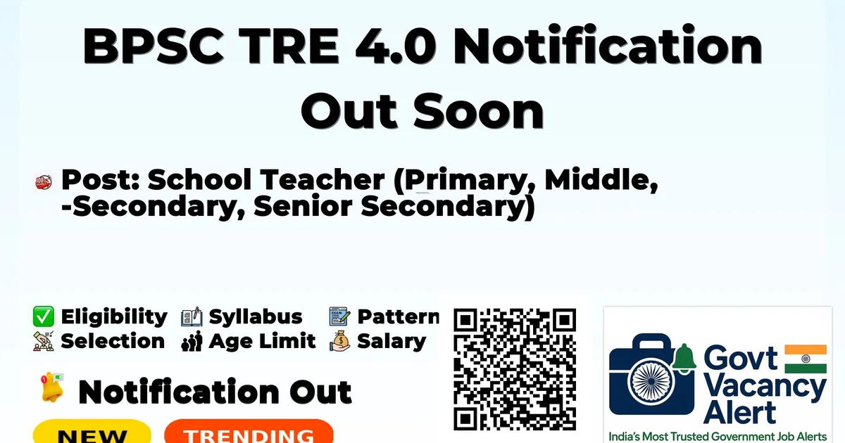 Bihar Public Service Commission (BPSC) will conduct Teacher Recruitment Examination (TRE) 4.0 to fill school teacher posts across Bihar, with the notification expected shortly.
