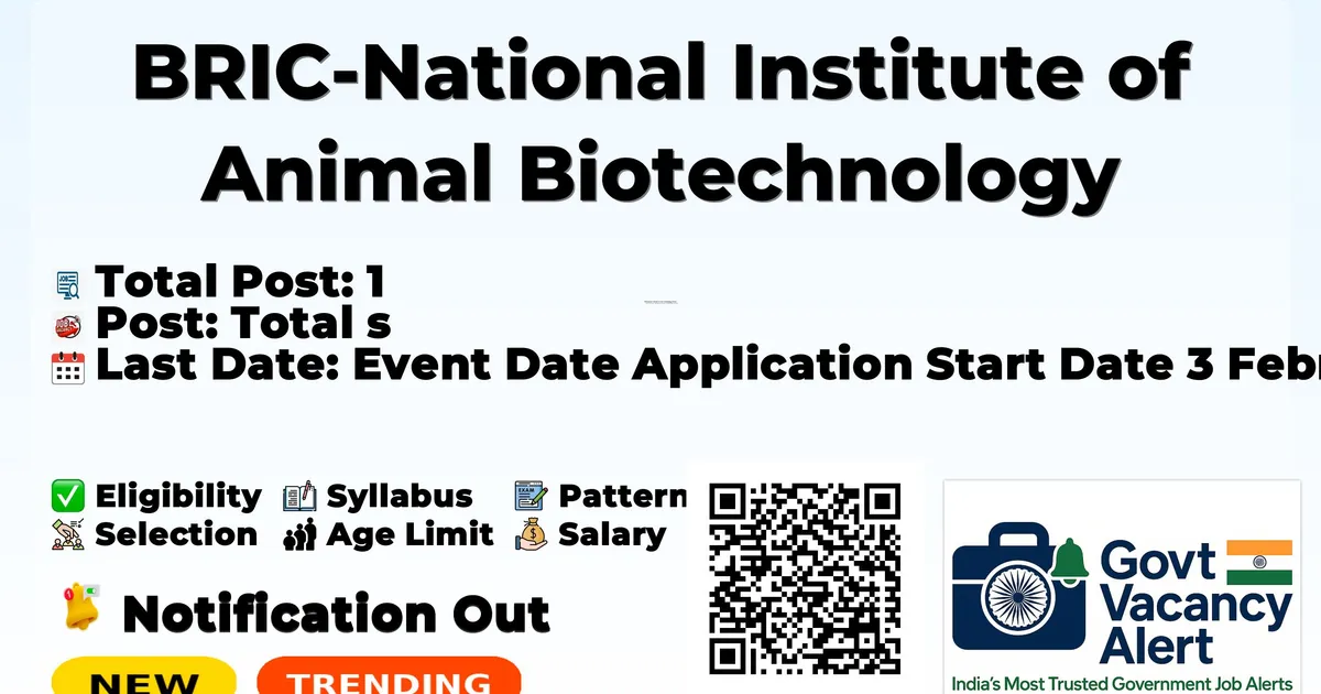 BRIC-National Institute of Animal Biotechnology (NIAB) Recruitment 2026: BRIC-National Institute of Animal Biotechnology has released the official notification for Project Technical Support-III posts, inviting applications from eligible candidates in Telangana. This recruitment provides an excellent opportunity for candidates seeking stable and well-paid research jobs.