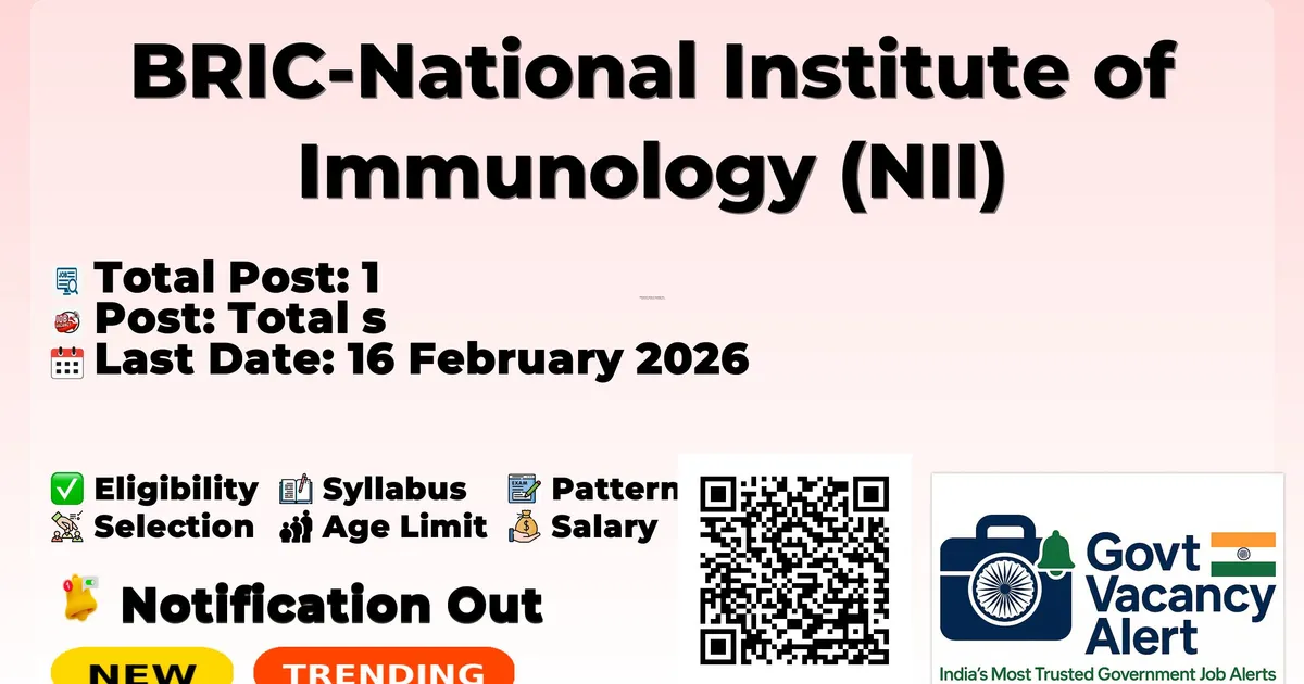 Company Name BRIC-National Institute of Immunology (NII) Post Name Project Associate-II No of Posts 1 Salary Rs. 28,000/- Per Month plus 27% HRA Qualification Masters in Life Sciences Last Date for Apply 16-02-2026 Walk-in Date 18-02-2026 Job Type Project-based