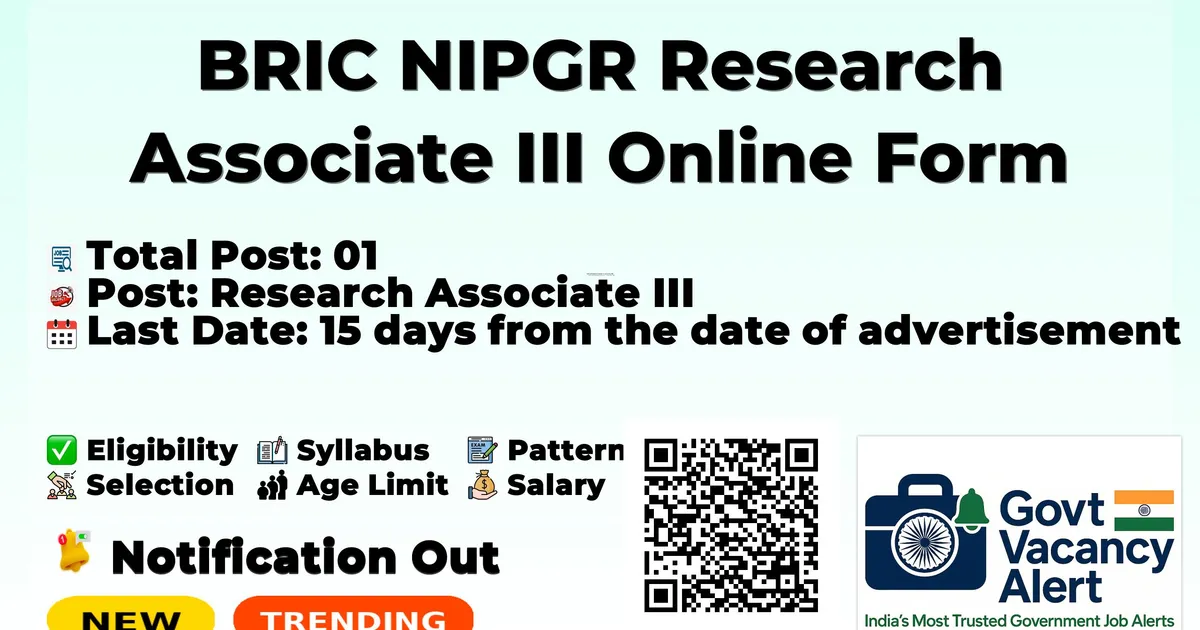 BRIC NIPGR Research Associate III Online Form 2025 — Research Associate III