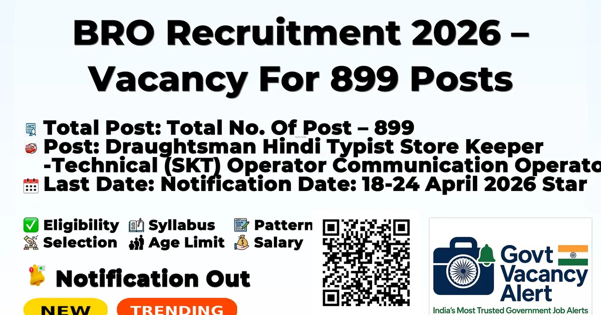BRO Recruitment 2026 – Vacancy For 899 Posts