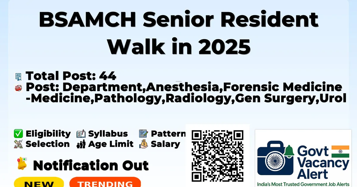 Dr Baba Saheb Ambedkar Hospital and Medical College (BSAMCH) Recruitment 2025 for 44 posts of Senior Resident. Candidates with DNB, PG Diploma, MS/MD Can attend the walkin. For detailed information please visit BSAMCH official website, health.delhi.gov.in.