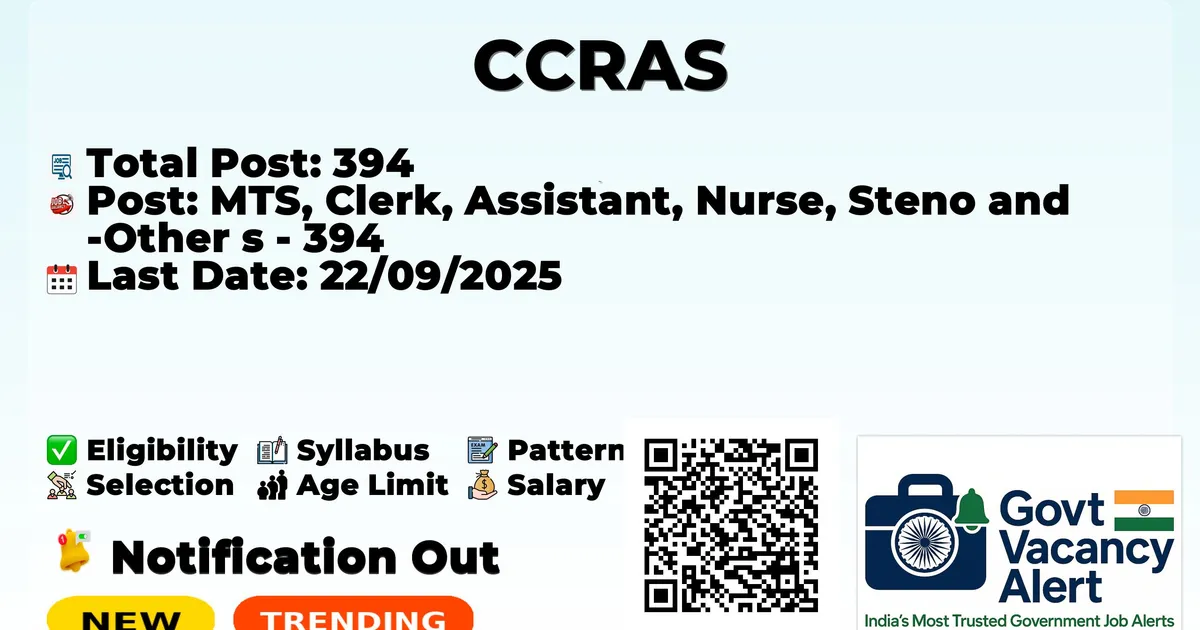 👉 Apply online through www.ccras.nic.in from 01/08/2025 to 22/09/2025.