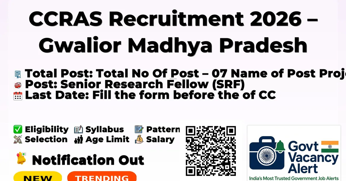CCRAS Recruitment 2026 – Gwalior Madhya Pradesh