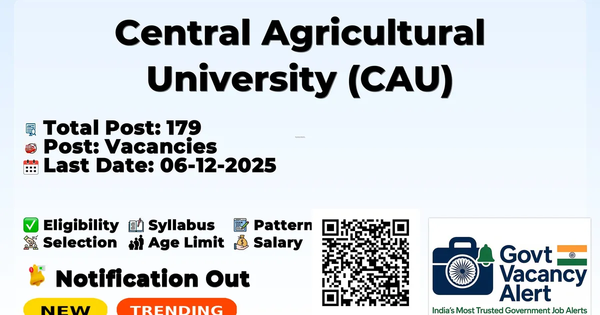 Central Agricultural University (CAU) has released an official notification for the recruitment of 179 Professor, Chairman and Other Posts. Interested and eligible candidates can apply Online through the official CAU website. The last date to submit the application form is 06-12-2025. In this article, you’ll find the CAU Professor, Chairman and Other Posts recruitment details, including eligibility criteria, age limit, salary structure, selection process, application steps, and direct links to the official notification and Online application form.