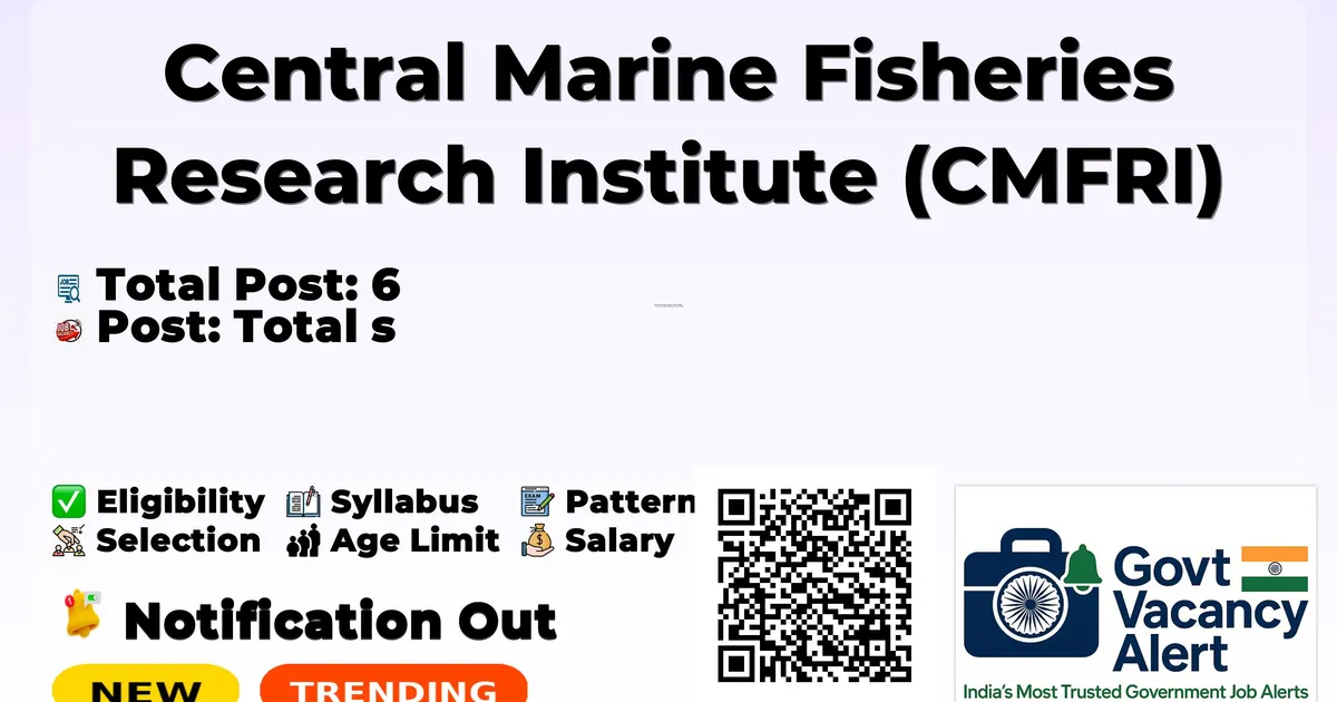 Central Marine Fisheries Research Institute (CMFRI) has officially announced a Walk-in Interview for the recruitment of 6 Skilled Labour Posts. This walk-in drive offers a great opportunity for candidates looking for government jobs. Candidates with Pass in 10th class/SSLC (minimum) qualification can directly attend the interview on 18-03-2026. Candidates are advised to reach the walk-in venue on time with all original documents, self-attested photocopies, and recent passport-size photographs.