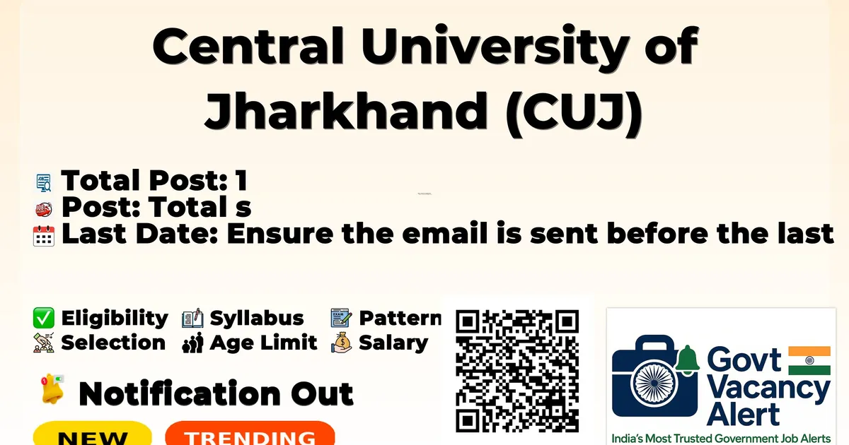 Central University of Jharkhand (CUJ) has officially released a notification for the recruitment of 1 Project Associate I Posts. This recruitment drive offers a great opportunity for candidates looking for government jobs. Interested and eligible candidates can apply by sending their resume and documents to the official email address.