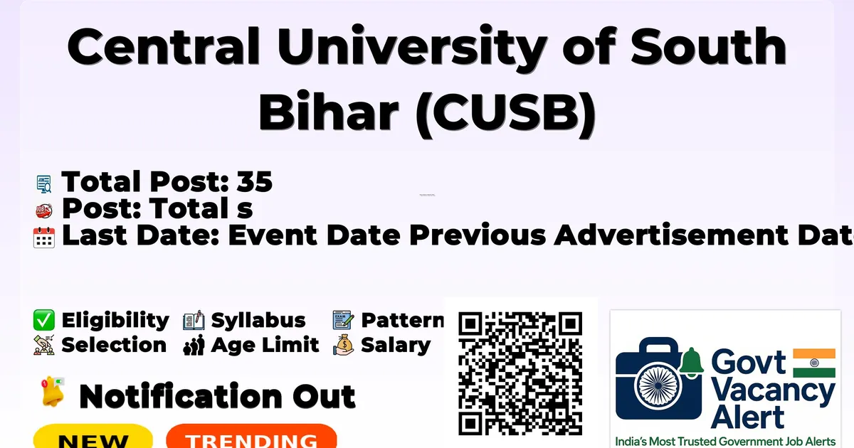 Central University of South Bihar (CUSB) has released an official notification for the recruitment of 35 Professor / Associate Professor / Assistant Professor Posts. Interested and eligible candidates can apply Online through the official CUSB website. The last date to submit the application form is 30-03-2026.