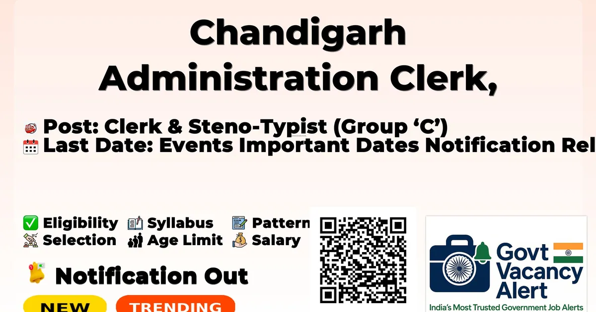 Chandigarh Administration Clerk and Steno-Typist Recruitment 2026 Notification has been released on 31 March 2026 on the official website chandigarh.gov.in. A total of 257 vacancies have been announced for Group ‘C’ posts of Clerk and Steno-Typist in Chandigarh Administration under the Common Cadre (Ministerial), (Non-Gazetted) Recruitment Rules, 2026, on regular basis. FreeJobAlert - Your Personal Govt Job Finder 10M+Users 100+Jobs/day FreeAlways ⚡ Get Custom Govt Job Alerts - Alerts by Qualification, State and Interest. Set Free Alerts ● Free · No spam · Unsubscribe anytime · freejobalert.com Online applications are invited with effect from 06 April 2026. Candidates are advised to read the official notification carefully to check eligibility criteria, age limit, application fee, selection process, and other important instructions before applying online. The direct links to the official public notice and apply online are provided below in this article. Advertisement Public Appointment Notice dated 31.03.2026 has been published. Candidates should thoroughly read the official advertisement to check vacancy details, eligibility criteria, age limit, pay scale, selection process, and detailed instructions. Document Download Link Chandigarh Administration Clerk and Steno-Typist Recruitment 2026 Public Appointment Notice Download Notice Particulars Details Recruitment Name Chandigarh Administration Clerk and Steno-Typist Recruitment 2026 Organisation Chandigarh Administration, Department of Personnel Post Name Clerk & Steno-Typist (Group ‘C’) Total Vacancies 257 (Clerk: 234*, Steno-Typist: 23*) *Number of posts are likely to vary Pay Scale Clerk: Level-2 as per 7th CPC Steno-Typist: Level-3 as per 7th CPC Application Mode Online only Application Start Date 06 April 2026