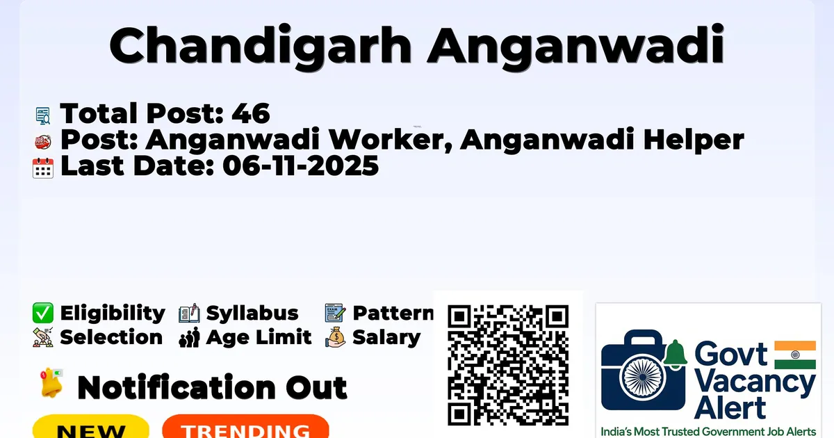 Chandigarh Anganwadi has released an official notification for the recruitment of 46 Anganwadi Worker, Anganwadi Helper Posts. Interested and eligible candidates can apply Offline through the official Chandigarh Anganwadi website. The last date to submit the application form is 06-11-2025. In this article, you’ll find the Chandigarh Anganwadi Worker, Anganwadi Helper Posts recruitment details, including eligibility criteria, age limit, salary structure, selection process, application steps, and direct links to the official notification and Offline application form.