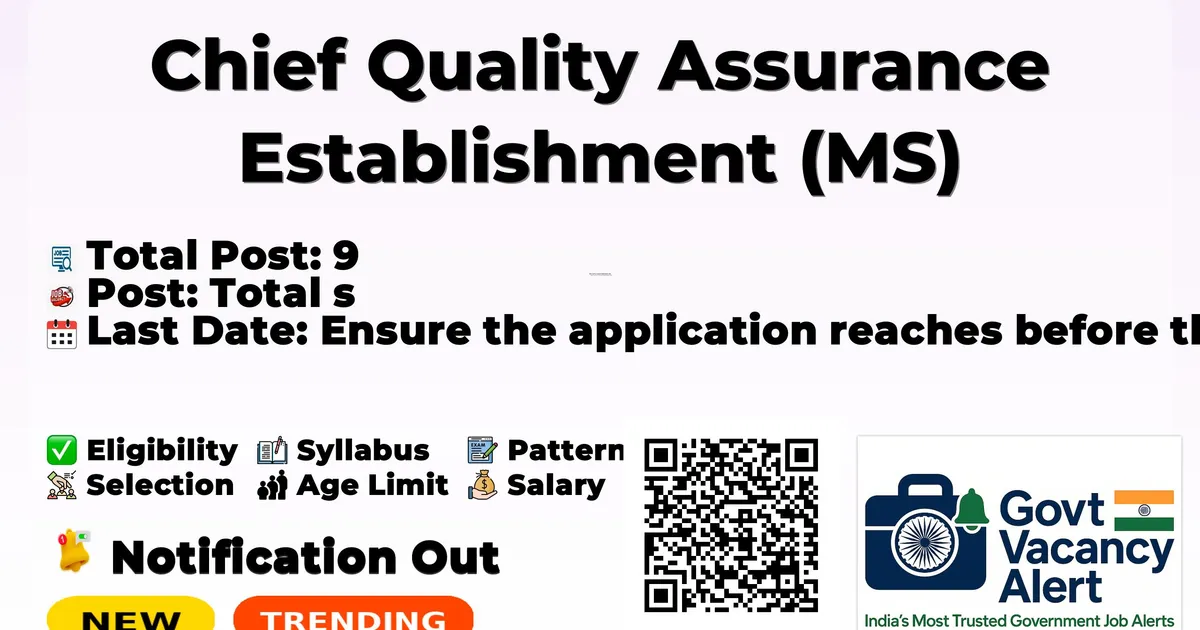 Chief Quality Assurance Establishment (MS) has officially released a notification for the recruitment of 9 Group 'C' (Non-Gazetted) Posts. This recruitment drive offers a great opportunity for candidates looking for government jobs. Interested and eligible candidates can download the application form from the official website and submit it offline.