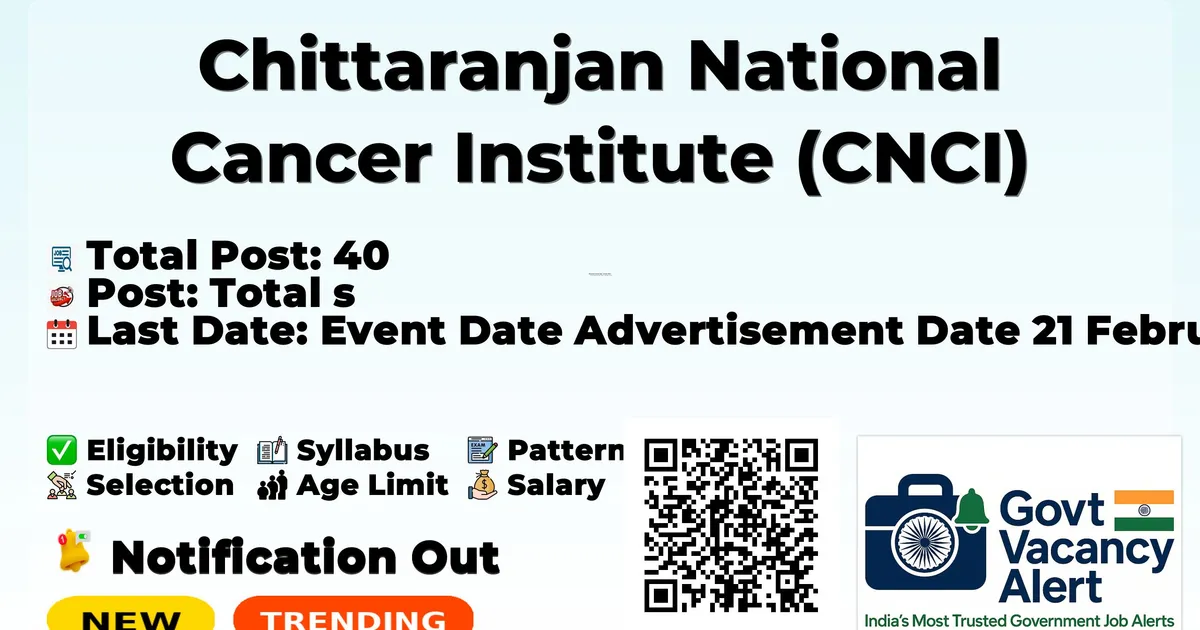 Chittaranjan National Cancer Institute (CNCI) has released an official notification for the recruitment of 40 Staff Nurse Posts. Interested and eligible candidates can apply Online through the official CNCI website. The last date to submit the application form is 02-03-2026. In this article, you’ll find the CNCI Staff Nurse Posts recruitment details, including eligibility criteria, age limit, salary structure, selection process, application steps, and direct links to the official notification and Online application form.