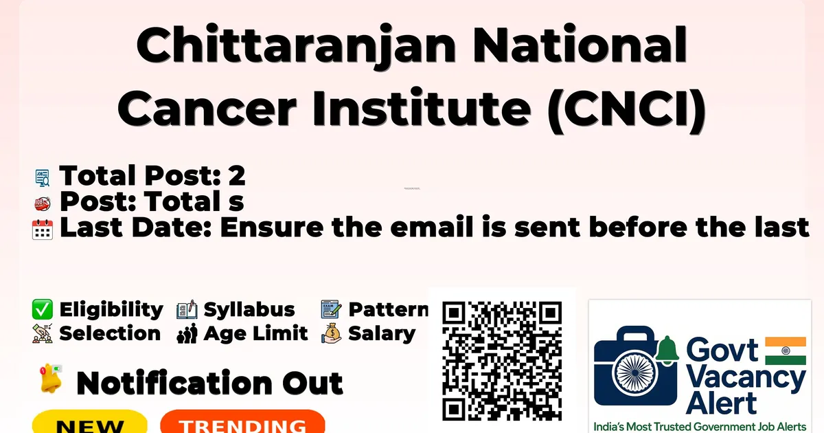 Chittaranjan National Cancer Institute (CNCI) has released an official notification for the recruitment of 2 OT Technologist Intern Posts. Interested and eligible candidates can apply by sending their application via Email. The last date to send the application email is 15-03-2026.