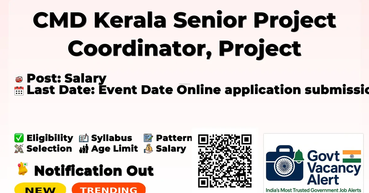 CMD Kerala Senior Project Coordinator, Project Engineer Online Form 2026 — Salary