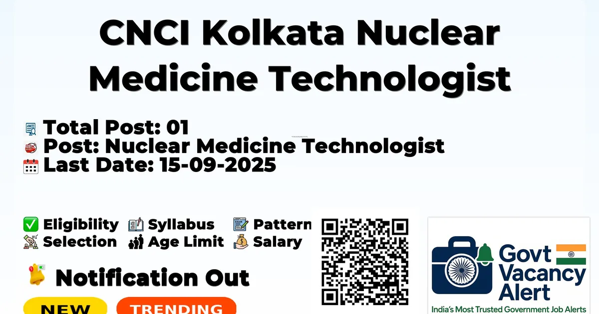 The Chittaranjan National Cancer Institute Kolkata (CNCI Kolkata) Recruitment 2025 for 01 posts of Nuclear Medicine Technologist. Candidates with B.Sc Can Apply Offline. The Offline application opens on 30-08-2025, and closes on 15-09-2025. The candidate shall apply Offline through CNCI Kolkata website, cnci.ac.in.