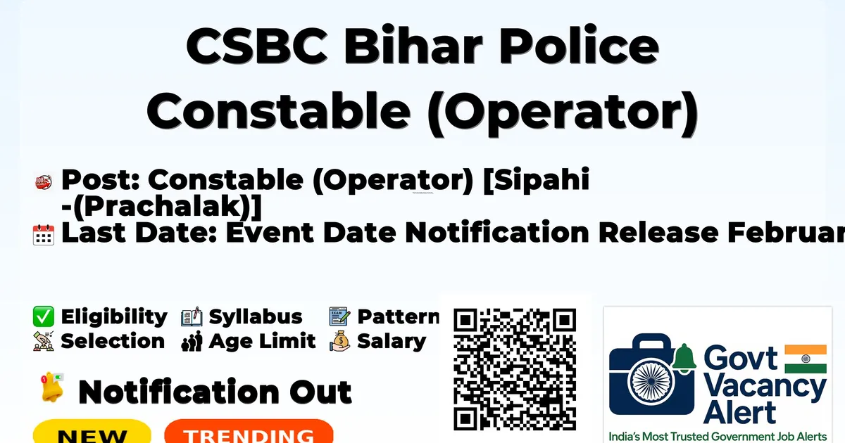 The Central Selection Board of Constable (CSBC), Bihar, has announced recruitment for Constable (Operator) [Sipahi (Prachalak)] positions in the Bihar Police Radio Organization under Advertisement No. 02/2026. This offers opportunities for eligible candidates to join the Bihar Police in telecommunications and technical non-gazetted cadre, with a focus on radio operations.
