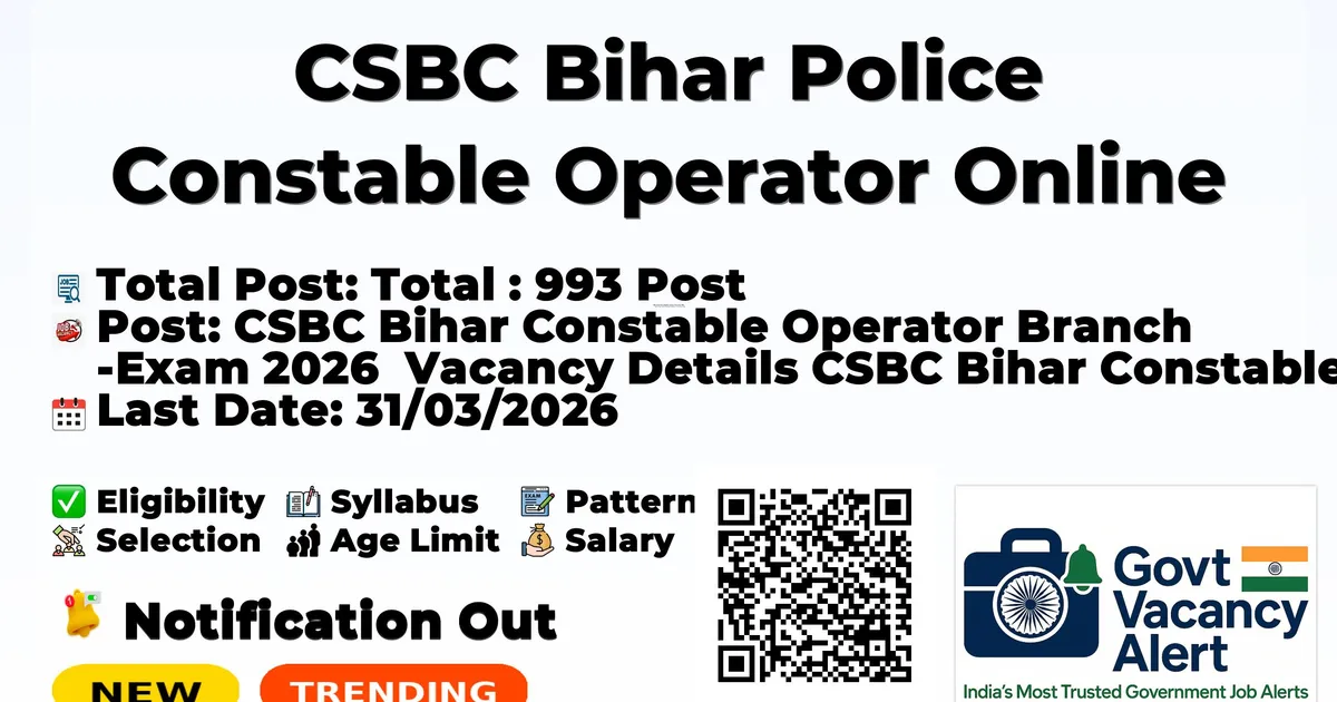CSBC Bihar Police Constable Operator Online Form 2026 — CSBC Bihar Constable Operator Branch Exam 2026 Vacancy Details