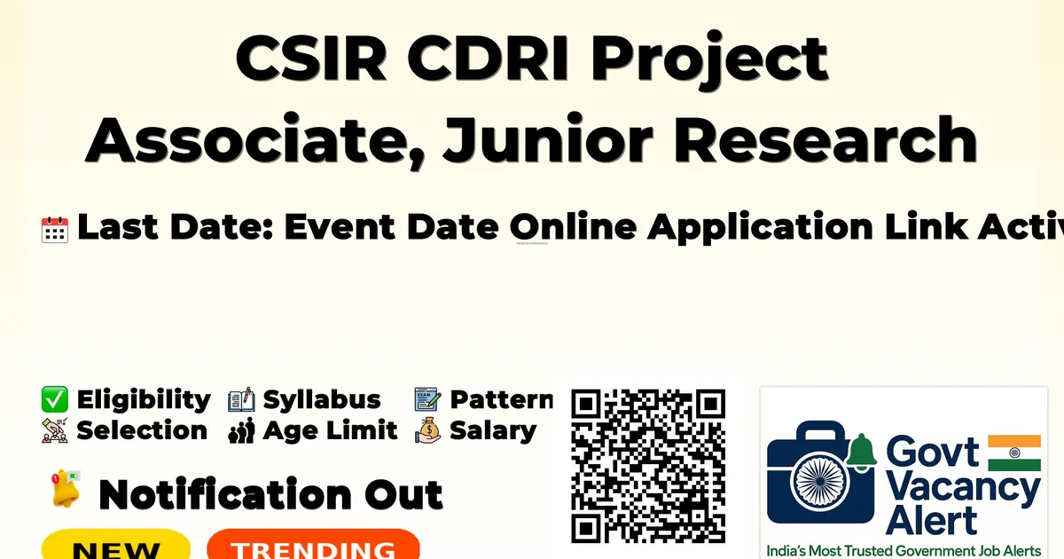 Central Drug Research Institute (CSIR CDRI) has released an official notification for the recruitment of 09 Project Associate, Junior Research Fellow Posts. Interested and eligible candidates can apply Online through the official CSIR CDRI website. The last date to submit the application form is 14-12-2025. In this article, you’ll find the CSIR CDRI Project Associate, Junior Research Fellow Posts recruitment details, including eligibility criteria, age limit, salary structure, selection process, application steps, and direct links to the official notification and Online application form. Join Arattai Channel Trending Govt Jobs RRB NTPC 12TH Level Online Form 2025 3058 Post Intelligence Bureau (IB) 362 MTS Online Form 2025 RRB 2569 JE (Junior Engineer) Online Form 2025 KVS and NVS 14967 Teaching and Non Teaching Online Form 2025 AIIMS 1383 CRE Online Form 2025 Advertisement The engagement is for purely temporary project positions at CSIR - Central Drug Research Institute, Lucknow under Advertisement No. 17/2025 for various projects in Chemical Sciences and Life Sciences areas. Project Associate (PAT-I) / Project Associate-I (Chemical Sciences – Online/Walk-in): Master Degree/M.Pharm in Chemical Sciences/Pharmaceutical Chemistry OR M.Sc. in Chemical Sciences/Pharmaceutical Chemistry/Medicinal Chemistry, with CSIR-UGC/ICAR/ICMR NET (including lectureship/assistant professorship) or GATE or equivalent national level qualification as specified for certain posts. Junior Research Fellow (Project): Master’s degree in Chemistry/Chemical Sciences/Pharmaceutical Chemistry and qualified National Eligibility Tests such as CSIR-UGC NET (including lectureship/Assistant Professorship) or GATE or equivalent national level examinations conducted by Central Government Departments and their Agencies/Institutions. Project Associate (Life Sciences area): M.Sc. in Zoology/Biotechnology/Biochemistry/Life Sciences with minimum 70% marks or 7.0 CGPA in M.Sc., or Postgraduate degree in Life Sciences and qualified CSIR-UGC/ICAR/ICMR NET (including lectureship/assistant professorship) or GATE or equivalent. Project Assistant: B.Sc. in Life Sciences with laboratory experience in cell and animal handling. Advertisement No. 17/2025 includes positions under Part-I (Online Mode Interview) and Part-II (Walk-In-Interview) across Chemical Sciences and Life Sciences projects. Part-I – Online Mode Interview: Position Code 001: Project Associate (PAT-I) – 01 Position Position Code 002: Project Associate-I – 01 Position Part-II – Walk-In-Interview: Position Code 001: Project Associate (PAT-I) – 01 Position (Chemical Sciences) Position Code 002: Project Associate (PAT-I) – 01 Position (Chemical/Pharmaceutical Chemistry) Position Code 003: Junior Research Fellow (Project) – 01 Position Position Code 004: Project Associate (PAT-I) – 01 Position (Life Sciences – Biotechnology/Biochemistry/Biological Sciences) Position Code 005: Project Associate (PAT-I) – 01 Position (Life Sciences) Position Code 006: Project Associate (PAT-I) – 01 Position (Life Sciences with NET/GATE etc.) Position Code 007: Project Assistant – 01 Position (Life Sciences) Project Associate (PAT-I) / Project Associate-I: Upper age limit 35 years. Junior Research Fellow (Project): Upper age limit 28 years. Project Assistant: Upper age limit 50 years. Age Relaxation: SC/ST/PwBD/Women – 5 years; OBC – 3 years, or as per Government of India instructions. Age Calculation (Online mode): Age will be reckoned as on the last date of submission of online application. Age Calculation (Walk-in): For walk-in positions, determining date for age/qualification and experience shall be the date of interview. Project Associate (PAT-I) – Online Mode, Position Code 001: Rs. 31,000 + 20% HRA per month. Project Associate-I – Online Mode, Position Code 002: Rs. 25,000 + 20% HRA per month. Project Associate (PAT-I) – Walk-in, Position Code 001, 002, 004, 005, 006: Rs. 25,000 + 20% HRA per month (except where Rs. 31,000 + 20% HRA is specified for Life Sciences post with NET/GATE etc.). Junior Research Fellow (Project) – Position Code 003: Rs. 37,000 + 20% HRA per month. Project Assistant – Position Code 007: Rs. 20,000 + 16% HRA per month. Screening Committee will shortlist candidates based on essential qualifications and additional criteria, if required. Shortlisted candidates for Part-I will be informed about date and mode of interview through email and list will be displayed on CDRI website. For Part-II (Walk-In-Interview), eligible candidates must report on the specified date and time at CSIR-CDRI, Lucknow. Written test in the subject area may be conducted on the same day, if required, to shortlist candidates for interview depending on the number of candidates. The interview may continue on subsequent days; candidates must make their own arrangements accordingly. No TA/DA will be paid for attending the interview. Final selection is subject to verification of original documents; any discrepancy will lead to automatic cancellation of selection. Part-I – Online Mode: Candidates must apply through the online application link activated from 01.12.2025 (5:00 PM) up to 14.12.2025. Applicants should ensure that they meet all essential qualifications and other conditions as on the last date of submission. Applications submitted after the scheduled date and time will be rejected. The online application must include complete details of qualifications and experience beyond minimum essential criteria, with supporting documents. Candidates with CGPA/SGPA/OGPA must convert it to percentage as per university formula and attach proof. Part-II – Walk-In-Interview: Eligible candidates should report for Walk-in-Interview for position codes 001–003 (Chemical Sciences) and 004–007 (Life Sciences) on 08.12.2025 from 09:00 AM onwards at CSIR-CDRI, Sector 10, Jankipuram Extension, Sitapur Road, Lucknow – 226031. Candidates reporting after 10:00 AM will not 