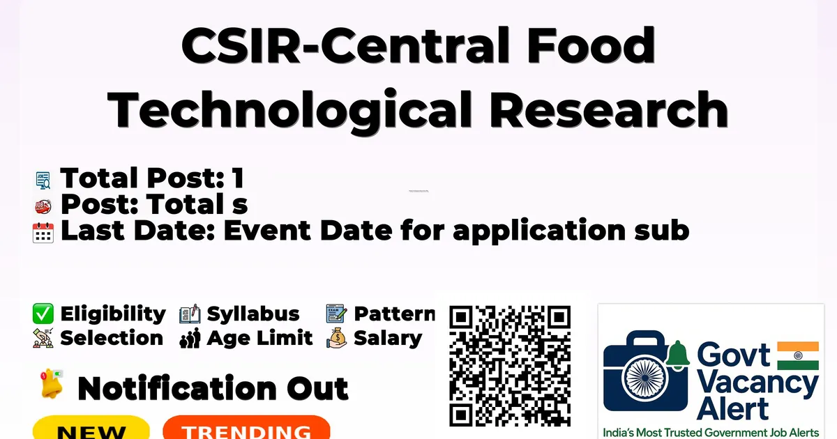 CSIR-Central Food Technological Research Institute (CFTRI) has officially released a notification for the recruitment of 1 Project Research Scientist-I Posts. This recruitment drive offers a great opportunity for candidates looking for research jobs. Interested and eligible candidates can apply online through the official website.