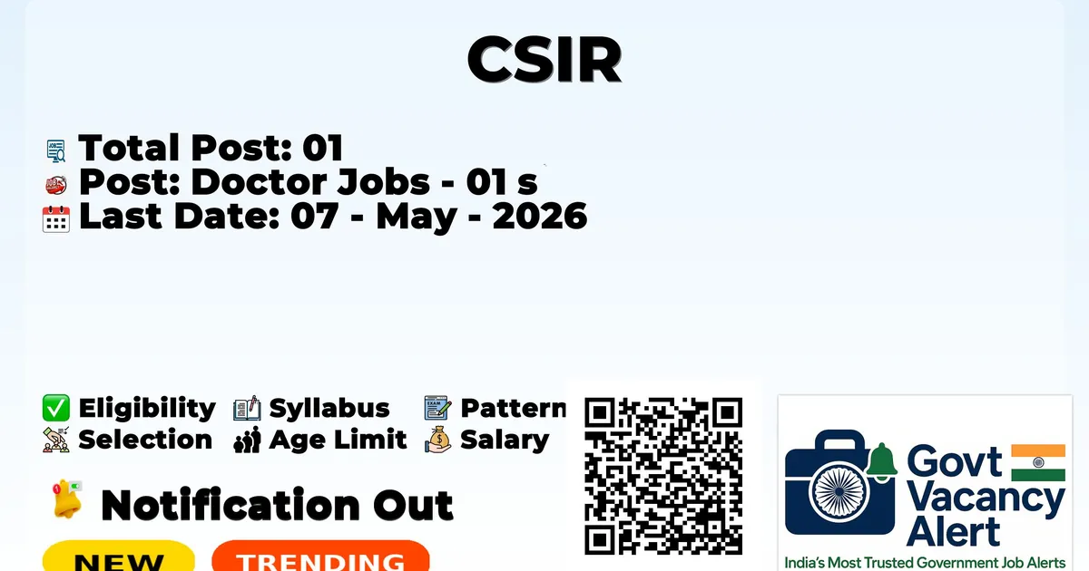 CSIR-Central Mechanical Engineering Research Institute (CSIR-CMERI) has declared the official notification for 2026. To fill up the vacancies for various Doctor Jobs. Those candidates who have qualified in the MBBS can grab this chance and apply for the CSIR CMERI Jobs 2026. Here, we included the age limit, selection process, salary structure, education details, application fee, and how to apply for these posts.
