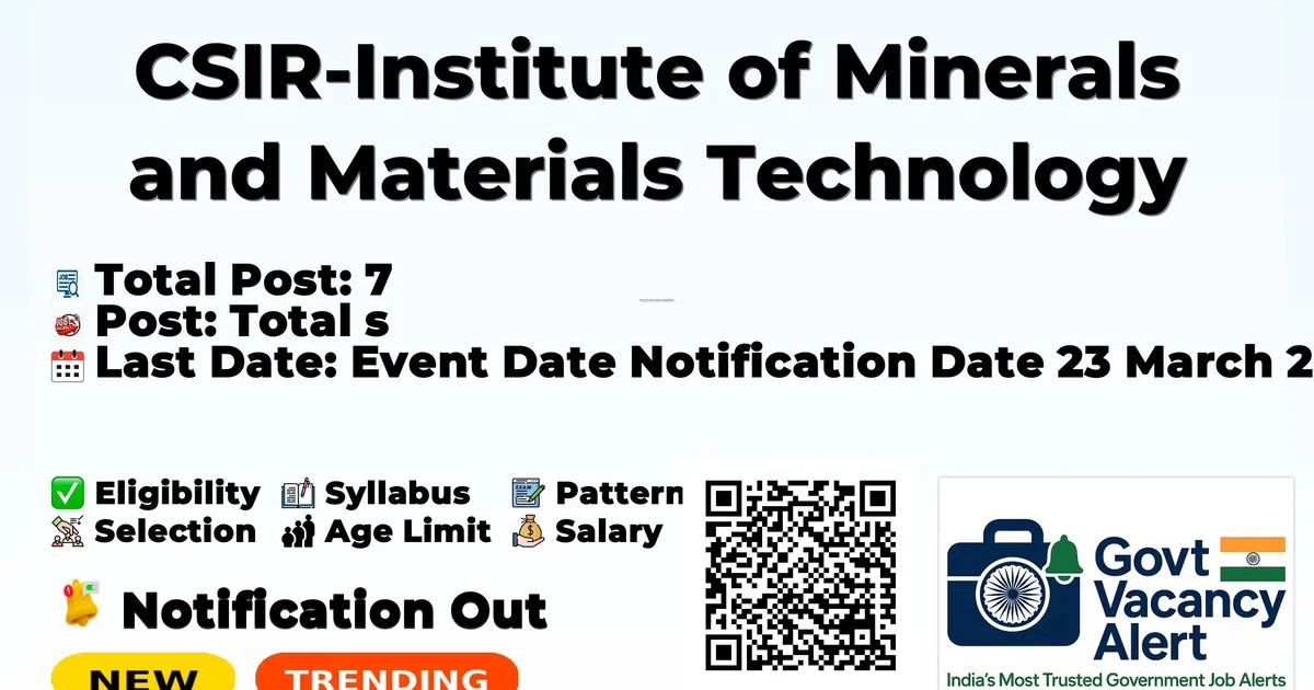 CSIR-Institute of Minerals and Materials Technology (CSIR-IMMT) Multi-Tasking Staff Notification 2026 has been released on 23 March 2026 on the official website www.immt.res.in . A total of 7 vacancies have been announced through the CSIR-IMMT Multi-Tasking Staff Recruitment 2026. FreeJobAlert - Your Personal Govt Job Finder 10M+Users 100+Jobs/day FreeAlways ⚡ Get Custom Govt Job Alerts - Alerts by Qualification, State and Interest. Set Free Alerts ● Free · No spam · Unsubscribe anytime · freejobalert.com Candidates 18 to 25 years of age who have Matriculation or equivalent pass are eligible to apply for these Multi-Tasking Staff vacancies. The online application process for CSIR-IMMT Recruitment 2026 has started on 23 March 2026 and will remain open until 21 April 2026. Candidates can download the official notification PDF and apply online through the direct links provided below in this article. Advertisement Company Name CSIR-Institute of Minerals and Materials Technology (CSIR-IMMT) Post Name Multi-Tasking Staff No of Posts 7 Advt No 02/2026 Salary Rs. ₹18000 - ₹56900 Per Month Qualification Matriculation or equivalent pass Age Limit Min: 18 years, Max: 25 years Last Date 21 April 2026 Apply Mode Online Job Type Full Time Candidates who are interested in applying for the CSIR-IMMT Recruitment 2026 should first download and carefully read the official notification PDF. The notification contains complete details about vacancy distribution, eligibility criteria, age limit, stipend/salary, selection process, important dates, and application instructions. Reading the official document is important to ensure that you meet all requirements before submitting the application form. Download CSIR-IMMT Multi-Tasking Staff Job 2026 Notification PDF Post Name Total Posts Multi-Tasking Staff 7 Total 7 Matriculation or equivalent pass Category Fee General/OBC Nil SC/ST Nil Minimum Age: 18 years Maximum Age: 25 years Age relaxation as admissible under the rules will be applicable to certain categories of candidates, wherever the posts are reserved for respective categories. Rs. ₹18000 - ₹56900 Per Month Event Date Notification Date 23 March 2026 Date of commencement of online application 23 March 2026 Last date of receipt of online application 21 April 2026 Written Test Applications must be submitted online on or before 21-04-2026. To apply directly, use the Apply Online link provided in the Important Links section. Alternatively, candidates may visit the official website of CSIR-IMMT to complete the application. Fill out the application form carefully with correct personal, educational, and contact details. Upload required documents such as photograph, signature, and certificates in the prescribed format. Pay the application fee online, if applicable. Review all details carefully before submitting the form. Take a printout or save a copy of the submitted application for future reference. Link Description Link Official Notification PDF Click here Apply Online Click here Official Website Click here FreeJobAlert - Your Personal Govt Job Finder 10M+Users 100+Jobs/day FreeAlways ⚡ Get Custom Govt Job Alerts - Alerts by Qualification, State and Interest. Set Free Alerts ● Free · No spam · Unsubscribe anytime · freejobalert.com