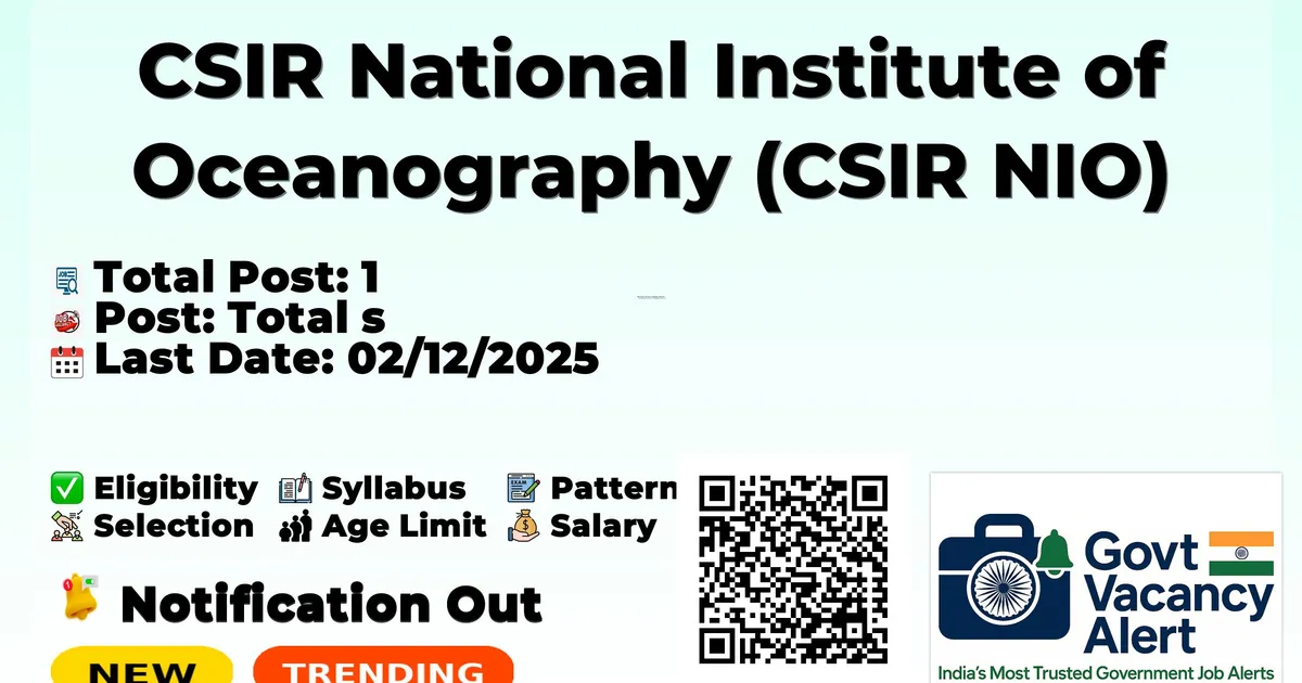 CSIR National Institute of Oceanography (CSIR NIO) has released an official notification for the recruitment of 01 Project Associate I Posts. Interested and eligible candidates can apply Offline through the official CSIR NIO website. The last date to submit the application form is 02-12-2025. In this article, you’ll find the CSIR NIO Project Associate I Posts recruitment details, including eligibility criteria, age limit, salary structure, selection process, application steps, and direct links to the official notification and Offline application form. Join Arattai Channel Trending Govt Jobs RRB NTPC 12TH Level Online Form 2025 3058 Post Intelligence Bureau (IB) 362 MTS Online Form 2025 RRB 2569 JE (Junior Engineer) Online Form 2025 KVS and NVS 14967 Teaching and Non Teaching Online Form 2025 AIIMS 1383 CRE Online Form 2025 Advertisement Company Name CSIR National Institute of Oceanography (CSIR NIO) Post Name Project Associate - I No of Posts 1 Salary 25,000/- Qualification Masters in Applied Geology/Geology Last Date for Apply 02/12/2025 Official Website https://www.nio.res.in Post Name Total Posts Project Associate - I 1 Essential Qualification: Masters in Applied Geology/Geology. Desirable: Experience in Groundwater studies. Desirable: Experience in satellite data processing and GIS software. Job requirement: To participate in field trips in boats/ships and along the coastal areas. Job requirement: To prepare research articles and any other tasks assigned by the project leader. Stipend per month: 25000. Event Date Last Date for application 02/12/2025 The position is required to be filled for a period of 3 months. Posting at Headquarters, Goa. Candidates must be able to participate in field trips and carry out tasks assigned by the project leader. Official Notification PDF: Click here Official Website: Click here Join Arattai Channel: Click Here Join Telegram Channel: Click Here Join WhatsApp Channel: Click Here Sarkari Result: Click Here Download Mobile App: Click Here Jobs In Goa North Goa Panaji South Goa Vasco Da Gama Also Read SEBI Recruitment 2025 - Officer Grade A (Assistant Manager) Vacancies - Rs 62500 to 126100 Salary - Apply Now AIIMS CRE Recruitment 2025 - 1300+ Group B and Group C Posts - Apply Link Click Here RRB Recruitment 2025 - 2500+ JE (Junior Engineer) Vacancies - 35400 Monthly Salary - Apply Now Jobs By Education 10TH Jobs› 8TH Jobs› 12TH Jobs› Diploma Jobs› ITI Jobs› B.Tech/B.E Jobs› B.com Jobs› Any Graduate Jobs› Any Post Graduate Jobs› RRB Group D Admit Card 2025 EMRS Teaching and NonTeaching Admit Card 2025 Delhi Police Head Constable (Ministerial) Admit Card 2025 ONGC 2623 Apprentices Online Form 2025 IOCL 2,756 Apprentices Online Form 2025 Maharashtra 15631 Police Constable Online Form 2025 RRB NTPC 12TH Level Online Form 2025 3058 Post Intelligence Bureau (IB) 362 MTS Online Form 2025 RRB 2569 JE (Junior Engineer) Online Form 2025 1. What is the last apply date for CSIR NIO Project Associate I 2025? Ans: Last apply date is 02-12-2025. 2. How many vacancies are being recruited by CSIR NIO Project Associate I 2025? Ans: Total 01 Vacancies.
