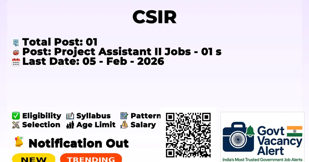 The Central Glass and Ceramic Research Institute (CGCRI) has officially released the notification to fill the vacancies of Project Assistant II Posts. Interested and eligibile candidates can use this opportunity to apply for these posts before the last date of application. Candidates who have completed their B.Sc. or Diploma can apply for the CGCRI Notification 2026. The interested applicants can attend the walk-in interview. Here we have mentioned the education details, age limit, selection process, application fee, salary, and how to apply for these posts before the deadline. The application dates have already begun.