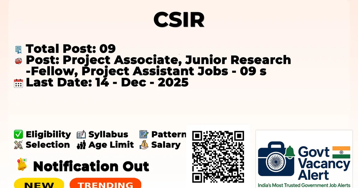 CSIR — Project Associate, Junior Research Fellow, Project Assistant Jobs - 09 Posts