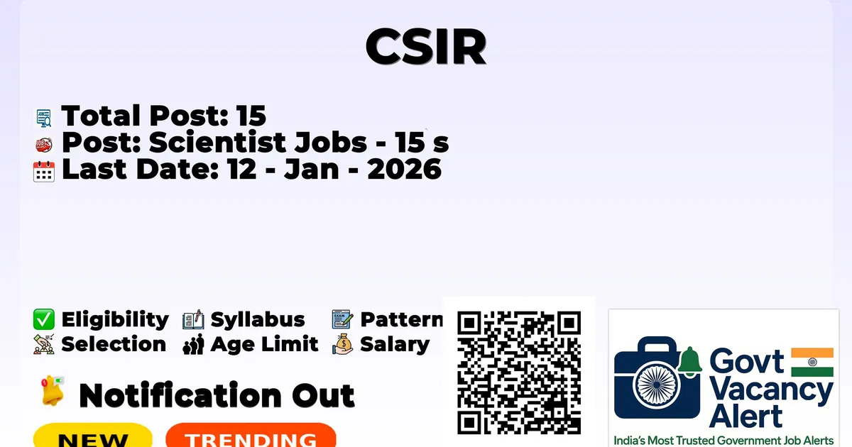 The Central Electrochemical Research Institute (CECRI) has officially released the notification to fill the vacancies of 15 Scientist Posts. Interested and eligibile candidates can use this opportunity to apply for these posts before the last date of application. Candidates who have completed their M.E./M. Tech in Mechanical Engineering, Ph.D., can apply for the CECRI Notification 2025. The interested applicants can apply in online mode. Here we have mentioned the education details, age limit, selection process, application fee, salary, and how to apply for these posts before the deadline. The application dates have already begun.