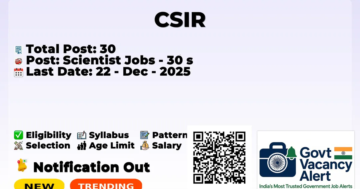 The Structural Engineering Research Centre (SERC) has declared the official notification for 2025. To fill up the vacancies for 30 Scientist Positions. Those candidates who have qualified in the B.Sc, Any Degree, Post Graduation can grab this chance and apply for the SERC Recruitment 2025. Here we include the age limit, selection process, salary structure, education details, application fee, and how to apply for these posts. Interested candidates can apply before the last date of application.