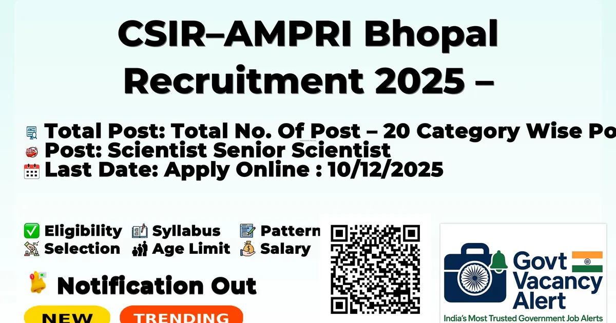 CSIR–AMPRI Bhopal Recruitment 2025 – Vacancy For Various Post
