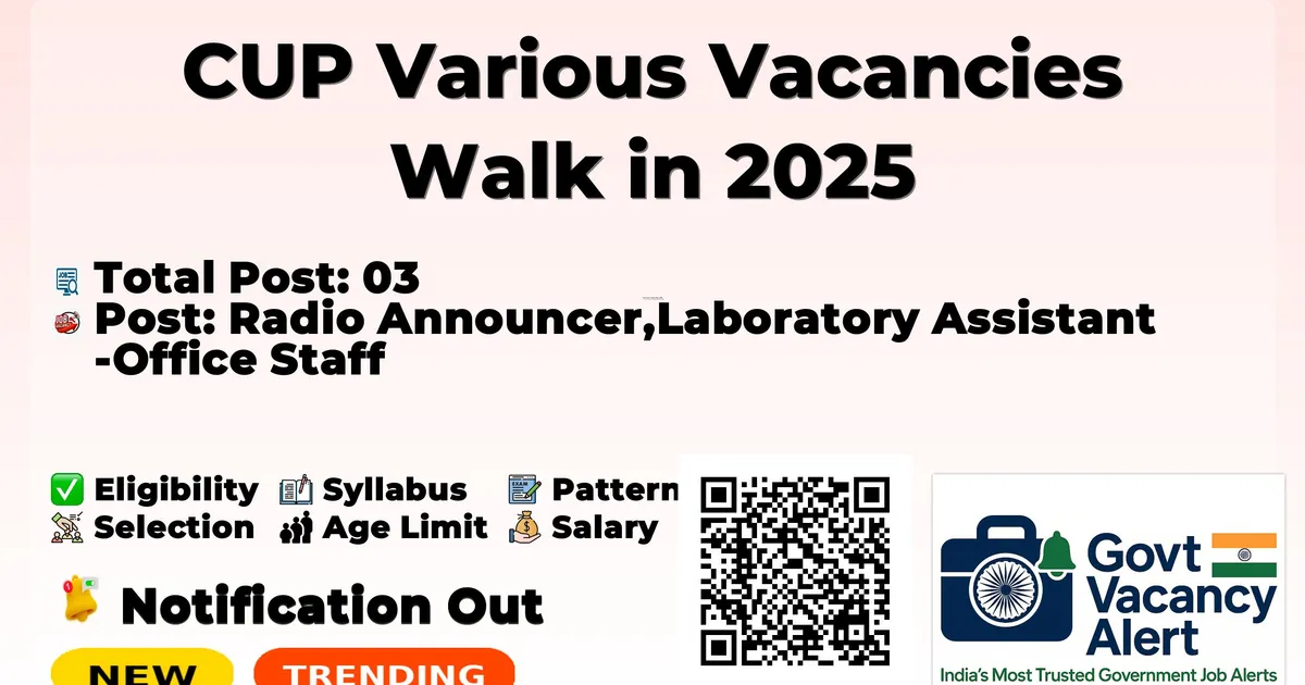 CUP Various Vacancies Walk in 2025 — Radio Announcer,Laboratory Assistant,Office Staff