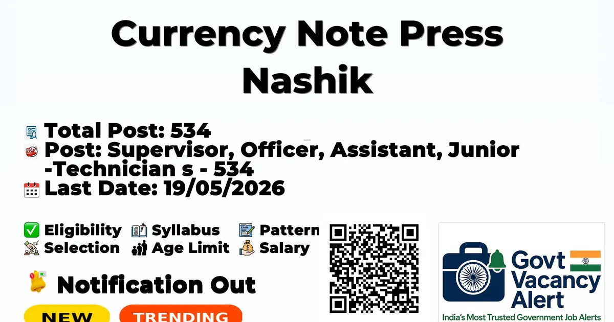Age Limit (as on 19.05.2026): 18 – 30 years for Officer/Supervisor posts, 18 – 28 years for Assistant/Artist posts, 18 – 25 years for Junior Technician posts (relaxations as per Govt. of India / SPMCIL rules).