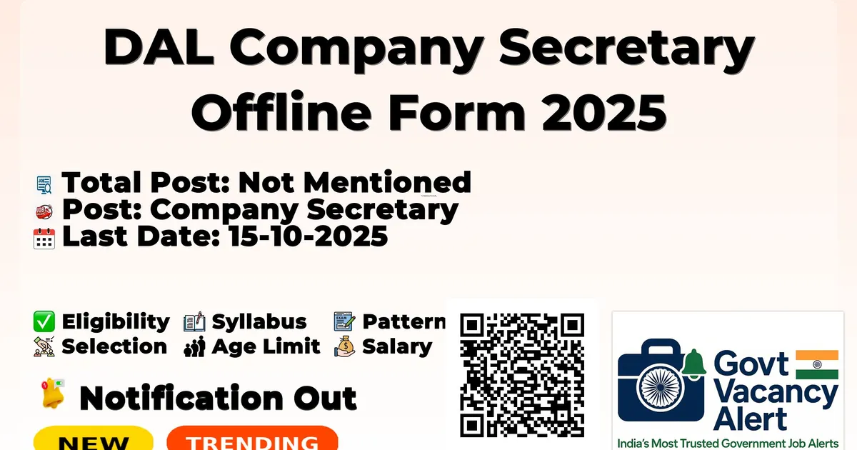 The DAL Company Secretary Recruitment 2025 Notification PDF has been released on 13-09-2025 at aai.aero. Check the complete job details, vacancy, age limit, application fee, selection process and how to apply from the article. You can Check all Latest Sarkari Result Updates of All Central Government Jobs and State Government Jobs.