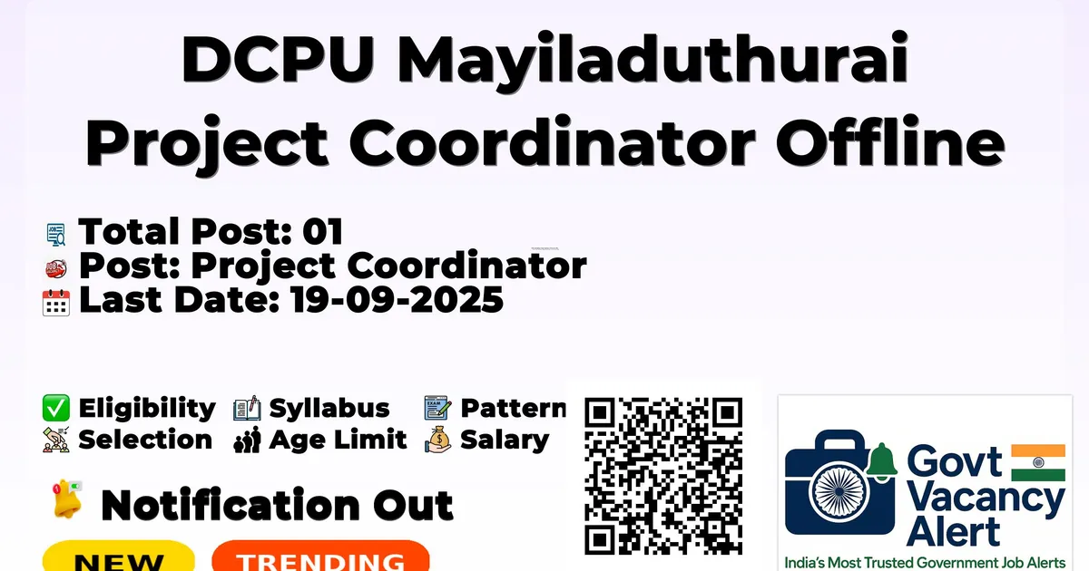 The DCPU Mayiladuthurai Project Coordinator Recruitment 2025 Notification PDF has been released on 11-09-2025 at mayiladuthurai.nic.in. Check the complete job details, vacancy, age limit, application fee, selection process and how to apply from the article. You can Check all Latest Sarkari Result Updates of All Central Government Jobs and State Government Jobs.