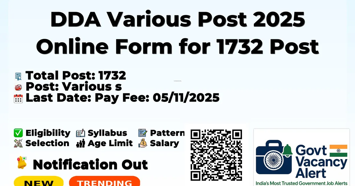 DDA Various Post 2025 Online Form for 1732 Post — Various Posts
