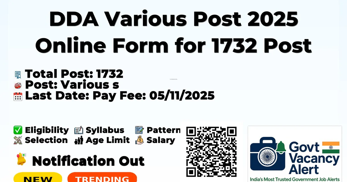 DDA Various Post 2025 Online Form for 1732 Post — Various Posts