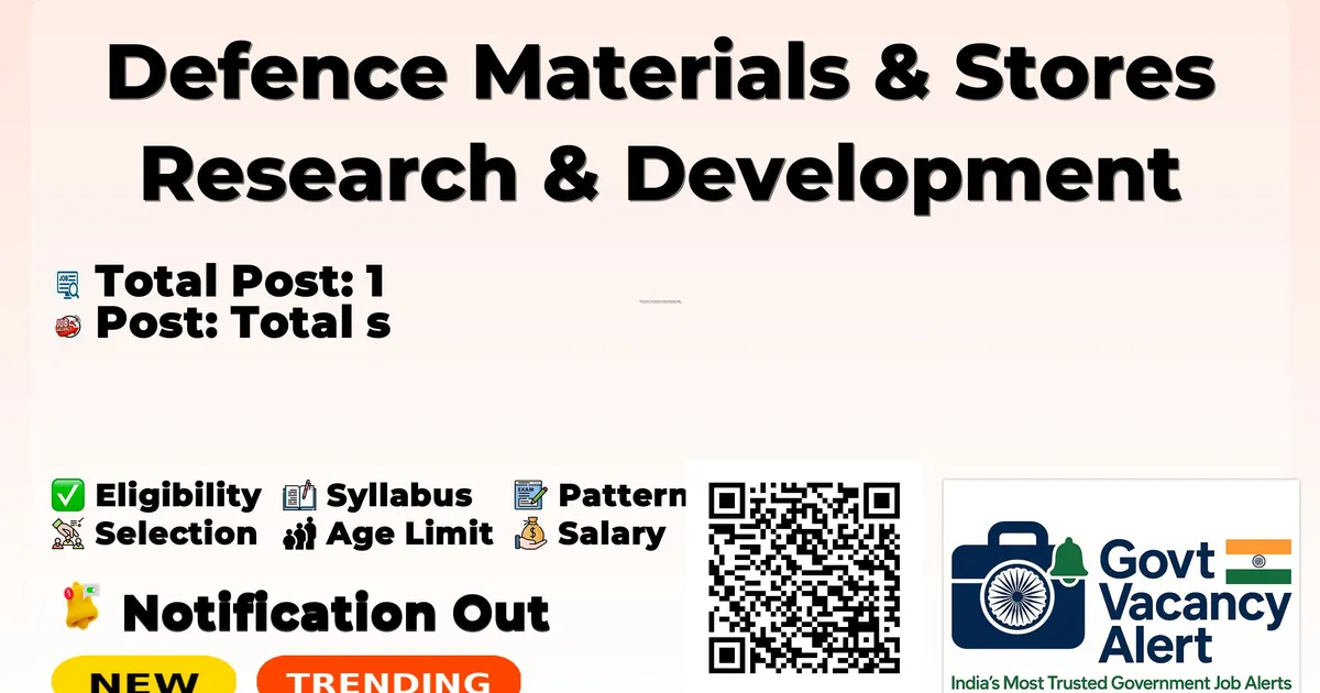 Defence Materials & Stores Research & Development Establishment (DMSRDE) has officially announced a Walk-in Interview for the recruitment of 1 Research Associate Posts. This walk-in drive offers a great opportunity for candidates looking for government jobs. Candidates with Ph.D. or equivalent degree in relevant discipline from a recognized university. qualification can directly attend the interview on . Candidates are advised to reach the walk-in venue on time with all original documents, self-attested photocopies, and recent passport-size photographs. In this article, you will find complete details about Research Associate Walk-in Recruitment 2026, including vacancy details, eligibility criteria, age limit, salary, walk-in schedule, venue address, and important links. Advertisement Company Name Defence Materials & Stores Research & Development Establishment (DMSRDE) Post Name Research Associate No of Posts 1 Salary Rs. 67,000/- Per Month Qualification Ph.D. or equivalent degree in relevant discipline from a recognized university. Age Limit Max: 35 years Walk-in Date 07 April 2026 Apply Mode Walk-in Job Type Contract Trending Govt Jobs RRB 22000 Group D Online form 2026 IAF Agniveer New Recruitment 2026 DSSSB 911 AE, JE & More Online Form 2026 MCL 677 Various Vacancies Online Form 2026 MMRDA 235 AE, JE and More Posts Online Form 2026 Candidates should download and read the DMSRDE Jobs 2026 notification PDF carefully to check vacancy details, eligibility, age limit, and application instructions. The notification also includes important dates and selection process details. The direct download link is available in the Important Links section below. Download DMSRDE Research Associate Job 2026 Notification PDF Post Name Total Posts Research Associateship (Chemistry) 1 Total 1 Ph.D. or equivalent degree in relevant discipline from a recognized university. Category Fee General/OBC Nil SC/ST Nil Maximum Age: 35 years Age Relaxation: 5 years relaxation for SC/ST candidates & 3 years for OBC candidates. However, the OBC candidates in the creamy layer will not be eligible for age relaxation. Rs. ₹ 67,000/- Per Month Event Date Walk-in Interview 07 April 2026 Walk-in Interview Candidates who wish to attend the walk-in interview for DMSRDE Research Associate Recruitment 2026 should follow the steps below. Read the official notification carefully before attending the interview. Candidates must report at the venue as per the reporting time mentioned in the notification. Carry all original documents along with one set of self-attested photocopies such as ID proof, educational certificates, experience certificates (if required), and category certificate (if applicable). Bring the duly filled application form if required in the notification. Verify eligibility criteria before attending the interview. Candidates are advised to reach the venue well in advance to complete registration formalities. Keep extra passport-size photographs for submission if required. Official Notification PDF Click here Official Website Click here