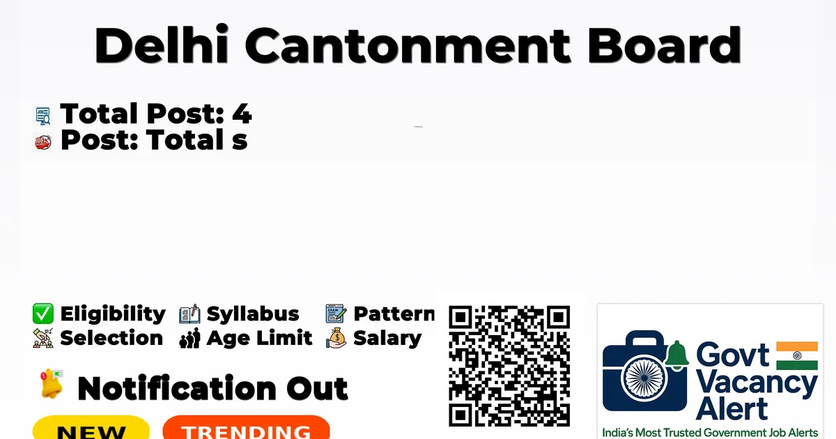 Company Name Delhi Cantonment Board Post Name General Duty Medical Officer No of Posts 4 Advt No CGH/2026/1673/A/ Salary Rs. 1,17,000/- per month Qualification MBBS/equivalent with Internship Age Limit Max: 50 years Apply Mode Walk-in Job Type Contract
